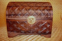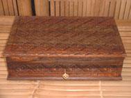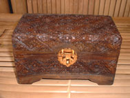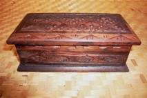 handgearbeitete Schmuckkassette mit Blüten - Motiv Schnitzerei;