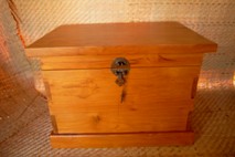 hochwertig handgearbeitete massive Holztruhe mit Holzverschluss