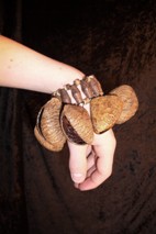 Rassel aus Samenschoten und Kokosperlen für Fuß - oder Handgelenk, mit Gummiband