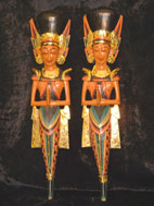 die Figuren stellen die balinesischen Götter Dewi Sri, Göttin der Landwirtschaft und Dewi Danu, Gott des Wassers dar