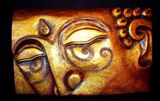 handgeschnitztes reliefartiges Wandbild Wanddeko mit Buddhamotiv