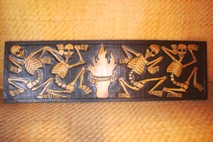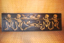 aus einem Stück handgeschnitztes reliefartiges Wandbild Wanddeko mit Skelett Motiv