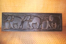 handgeschnitztes reliefartiges Wandbild mit Elefantenmotiv aus einem Stück